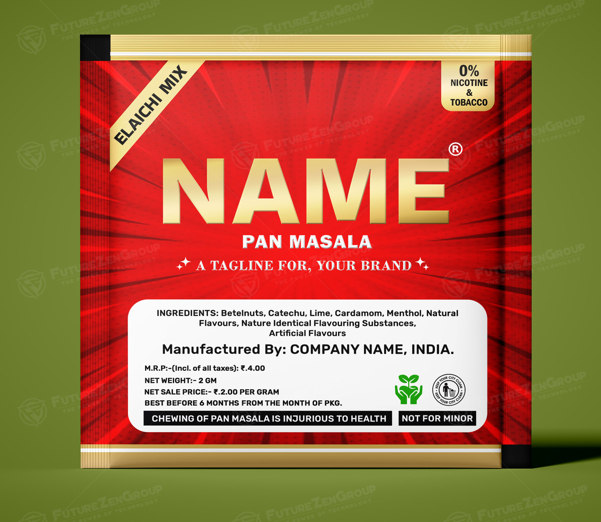 1. Visit the Official Website: Check Futurezengroup‘s official website to see if they have a dedicated section for Red & Green Pan Masala Packaging. Browse through their product or services pages, or look for a “Shop” or “Designs” section.